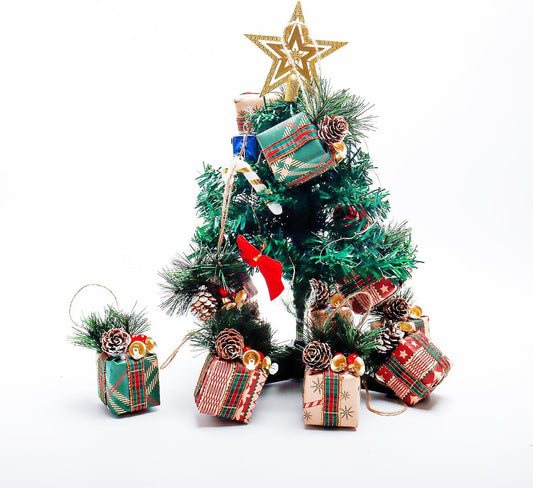 pamonrueer 14 Pcs Christmas Tree Mini Gift Boxes with Bell Hanging Ornaments Christmas Tiny Boxes Pendant for Xmas Tree Party Decor